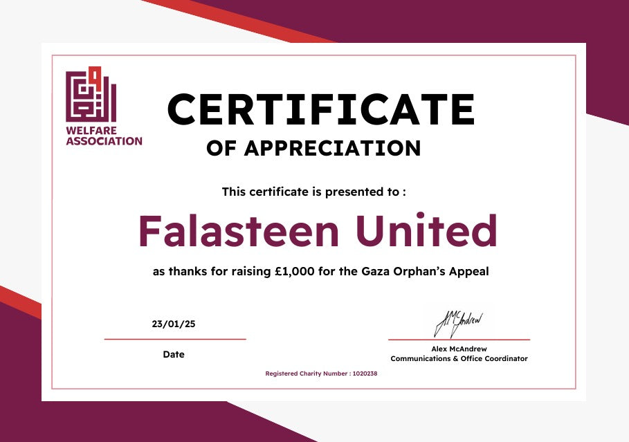 Thanks to your help, Falasteen United has donated a total of £1,000 to support this fund.