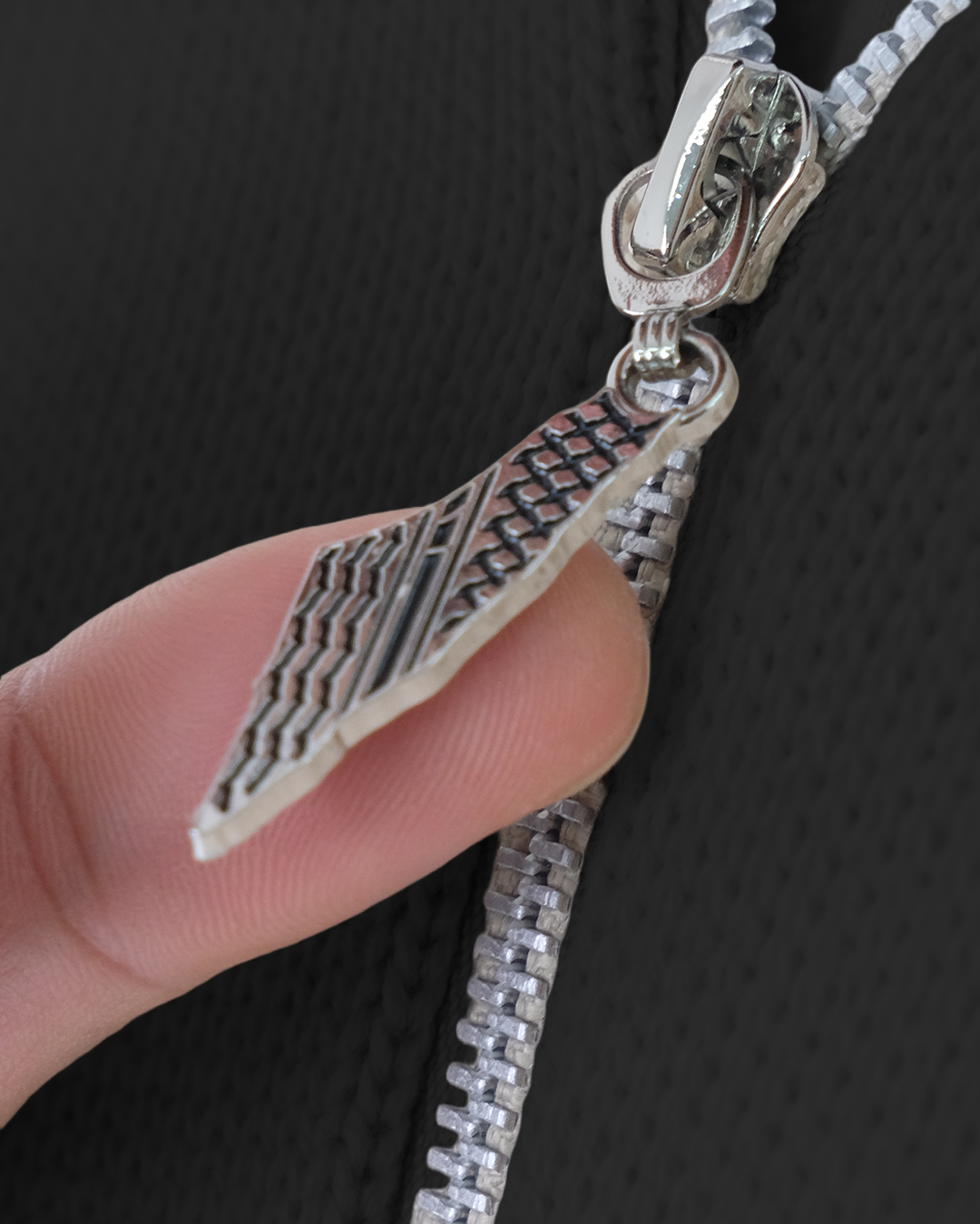 A modern layer where heritage meets function, featuring a signature pattern and a unique keffiyeh map zipper.